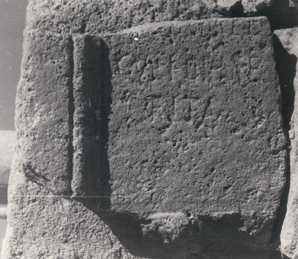 Text: Inscribed on one face within a moulded panel (die, surviving width 0.31).