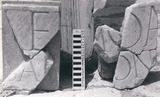 Description: Five fragments making up two adjacent fragments from a panel of cream marble (width incomplete, minimum w: