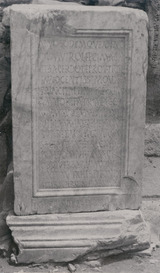 Bibliography: Bartoccini, 1928, 48, whence AE 1929.3; Aurigemma, 1940a, 84 ff., fig. 19; described Bartoccini, 1950 39, whence AE 1950.151; IRT, 1952, 567, whence IRT, 2009, 567, Vermaseren, CCCA 5.49; Tantillo-Bigi, 2010, 56, whence LSA, 2012, 2202 (Tantillo and Bigi), EDH (Bigi, 2014) 021901; for BSR images see BSR Digital Collections..