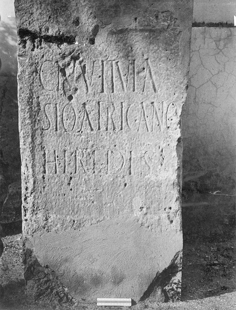 To Cnaeus Vituiasius (Vitulasius ?) Africanus; his heirs (scil. erected this).