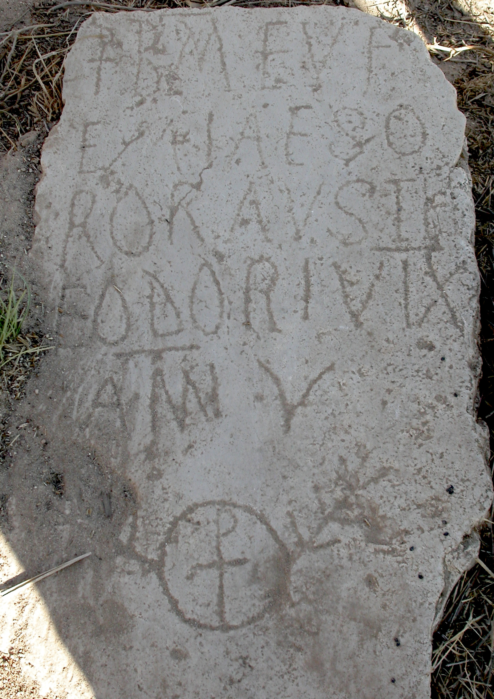(Monogram cross.) To the good memory of Euphemia, sister of ?Austheodorus. She lived five years.